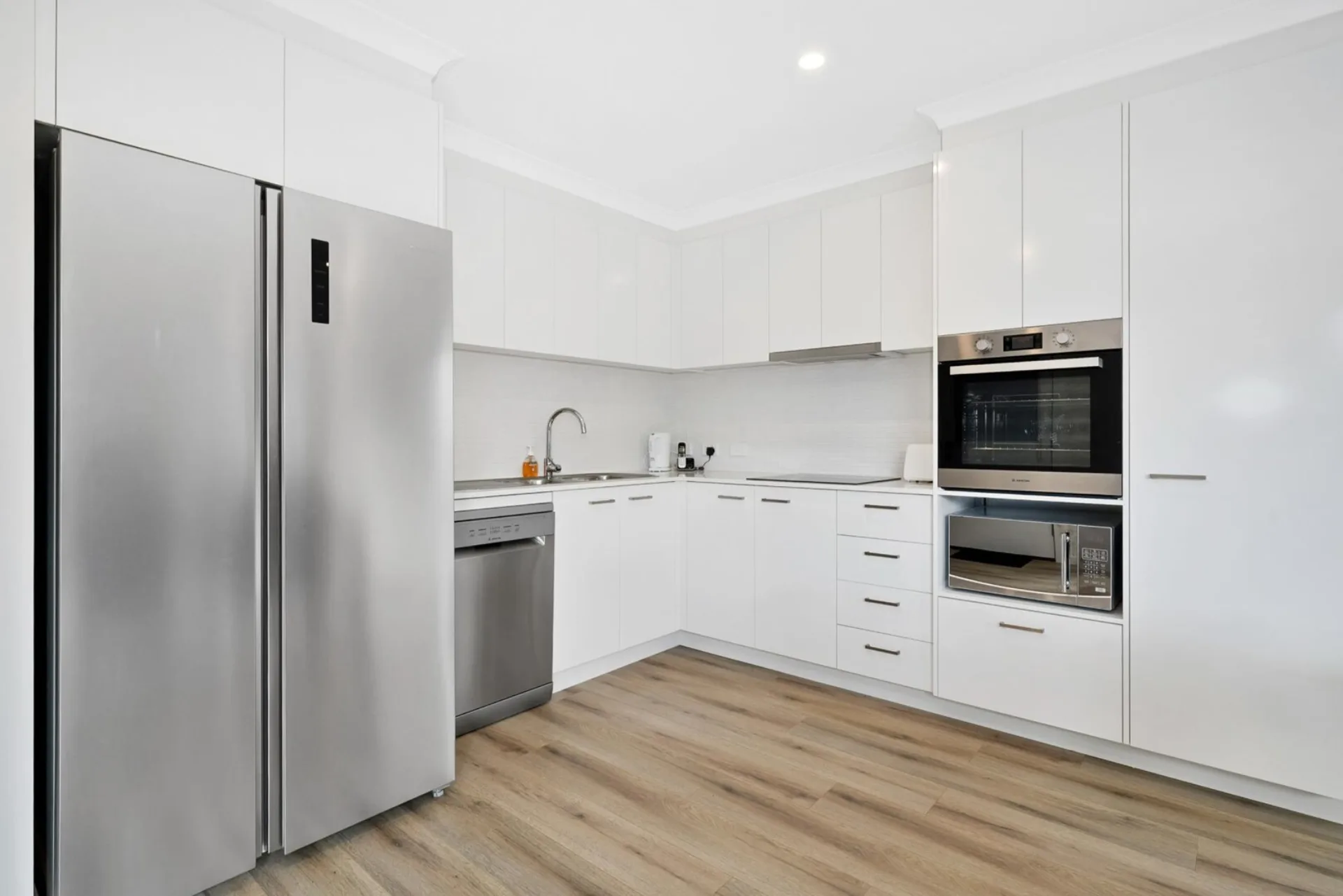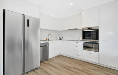 - Elegant stone benchtops and quality European appliances