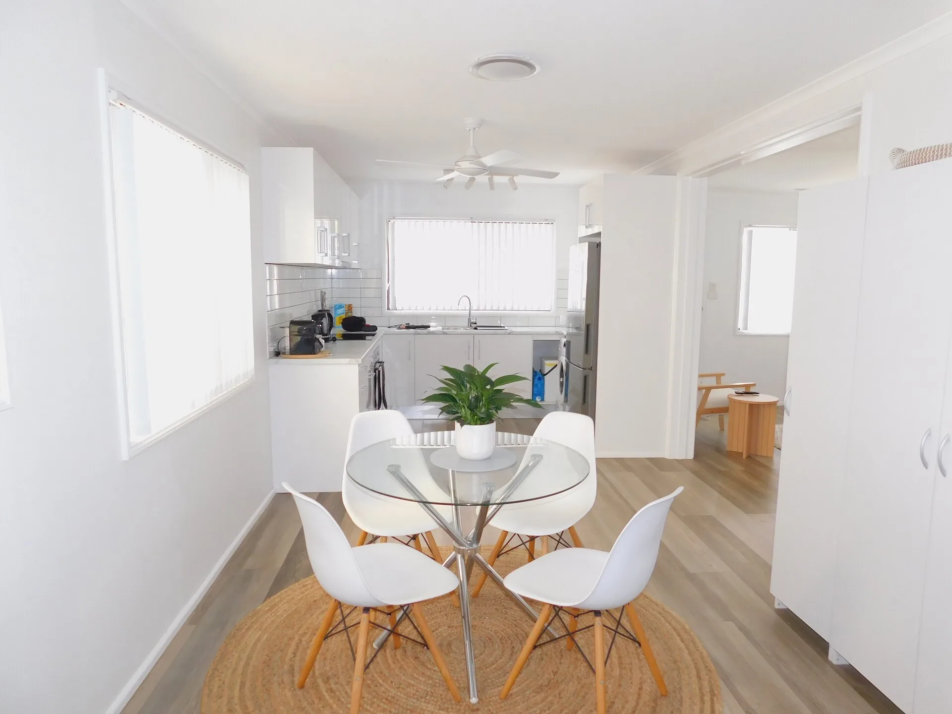 The light-filled lounge and dining area are kept comfortable year-round with reverse-cycle air conditioning.