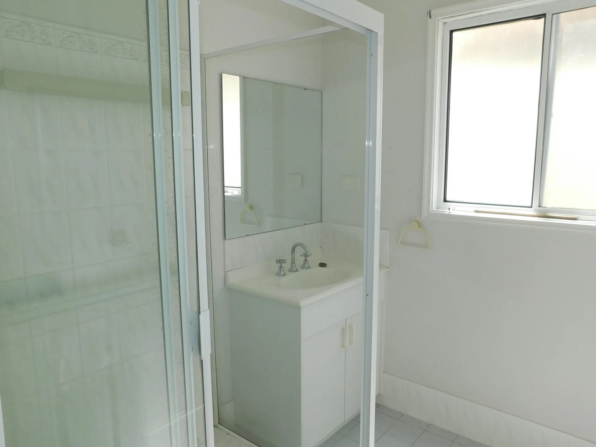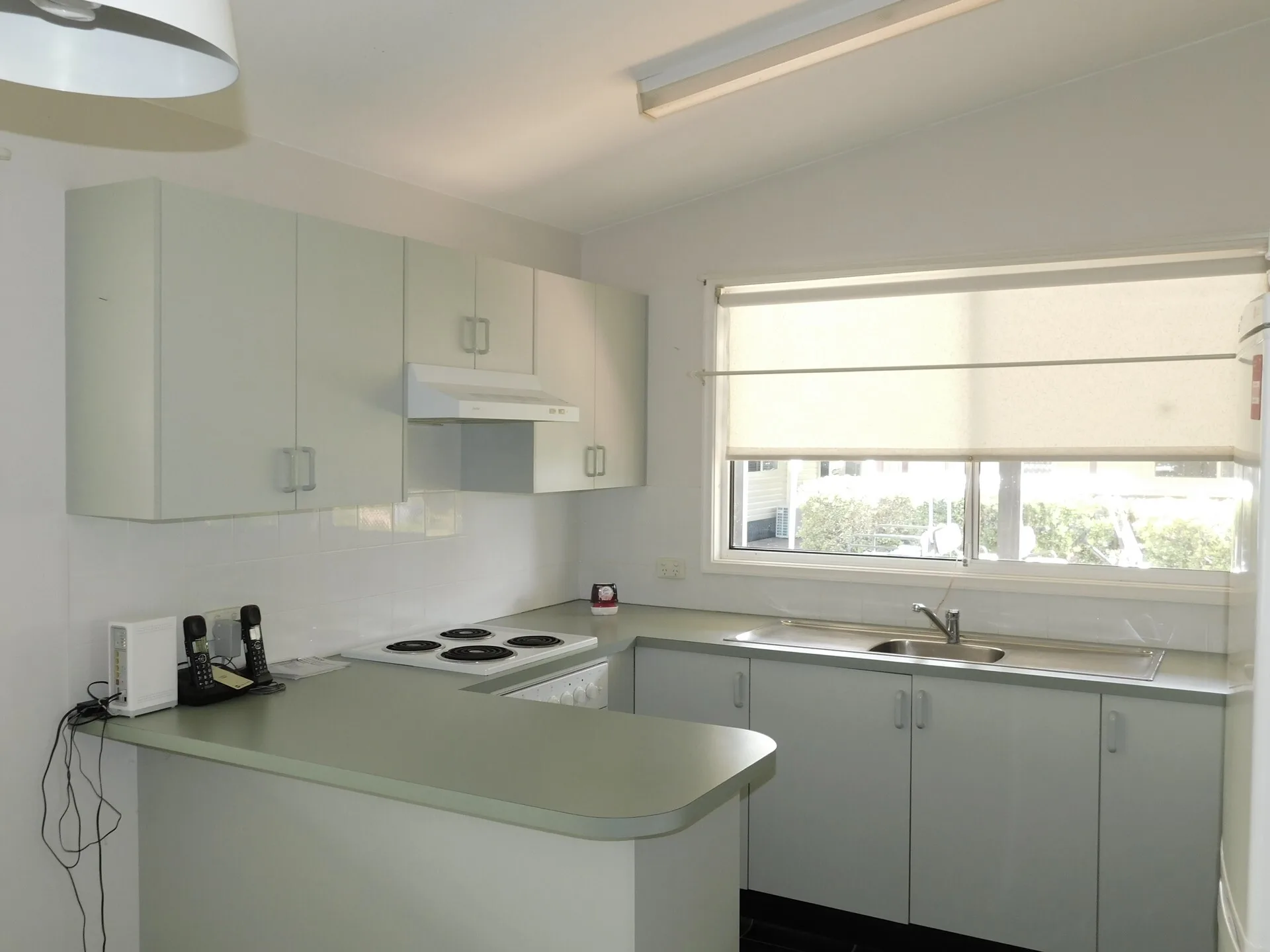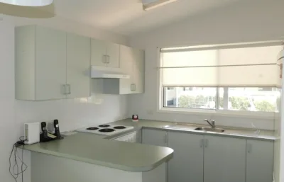 The kitchen is well-appointed with modern flooring, breakfast bar, and plenty of cupboard space. A spacious shower with safety handrail, separate toilet, ramp access, and security doors all add to the practicality of this neat and tidy home.