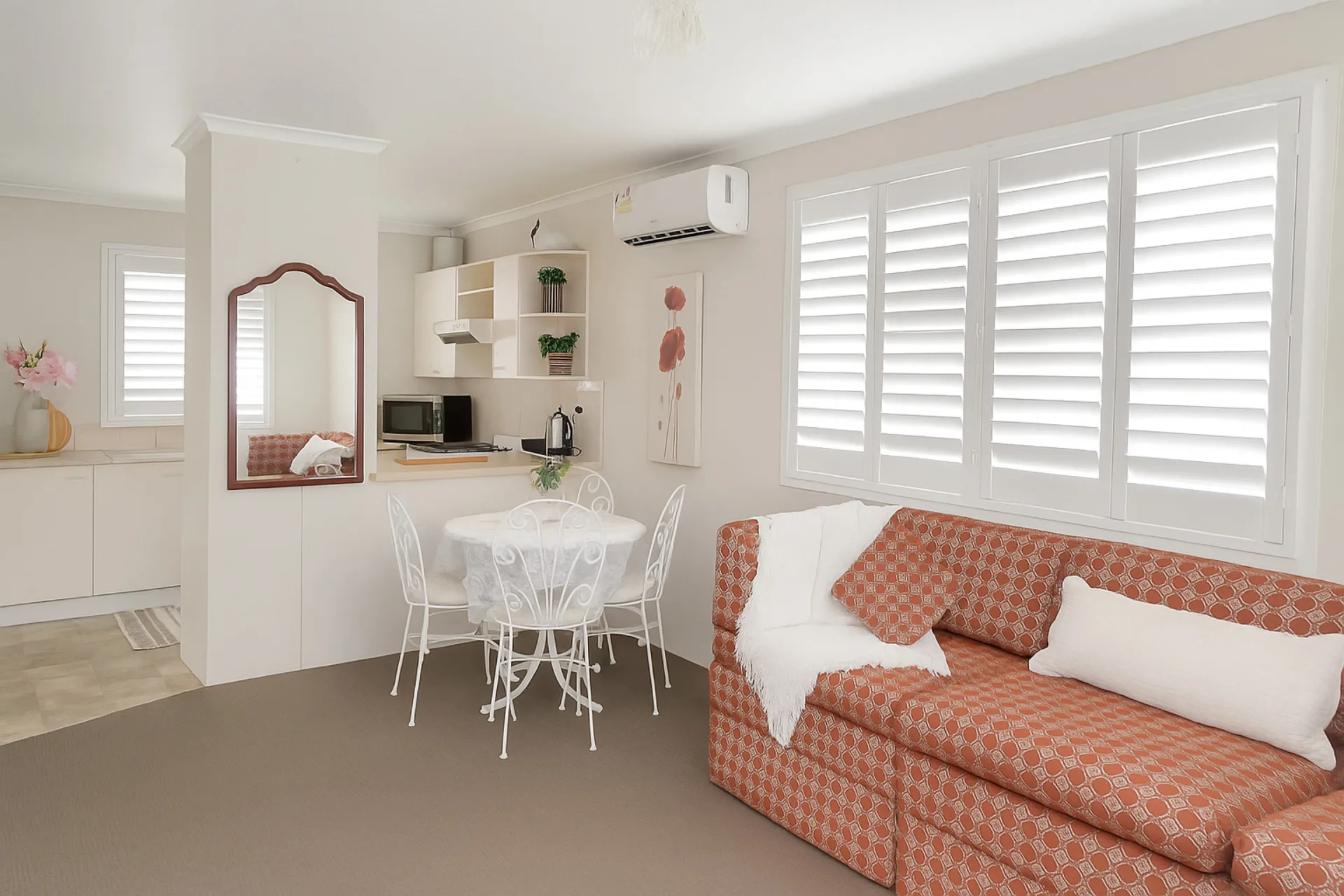 Positioned in a peaceful pocket of Bayway Village, this bright and cheerful one-bedroom home offers relaxed living with everything you need for a comfortable lifestyle. With a sunny front verandah and a covered rear deck, you’ll enjoy morning cuppas and afternoon breezes all year round.