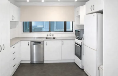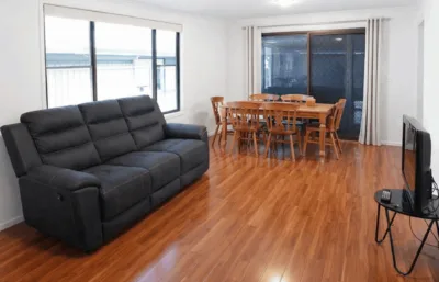 Inside, you’ll find two comfortable bedrooms with built-in robes and soft carpet underfoot, while timber-look flooring adds a modern, easy-care touch to the main living areas. Air conditioning and ceiling fans keep the home comfortable year-round, and the well-appointed kitchen features gas cooking and a dishwasher for everyday convenience. A separate toilet adds extra functionality for when family or friends visit.