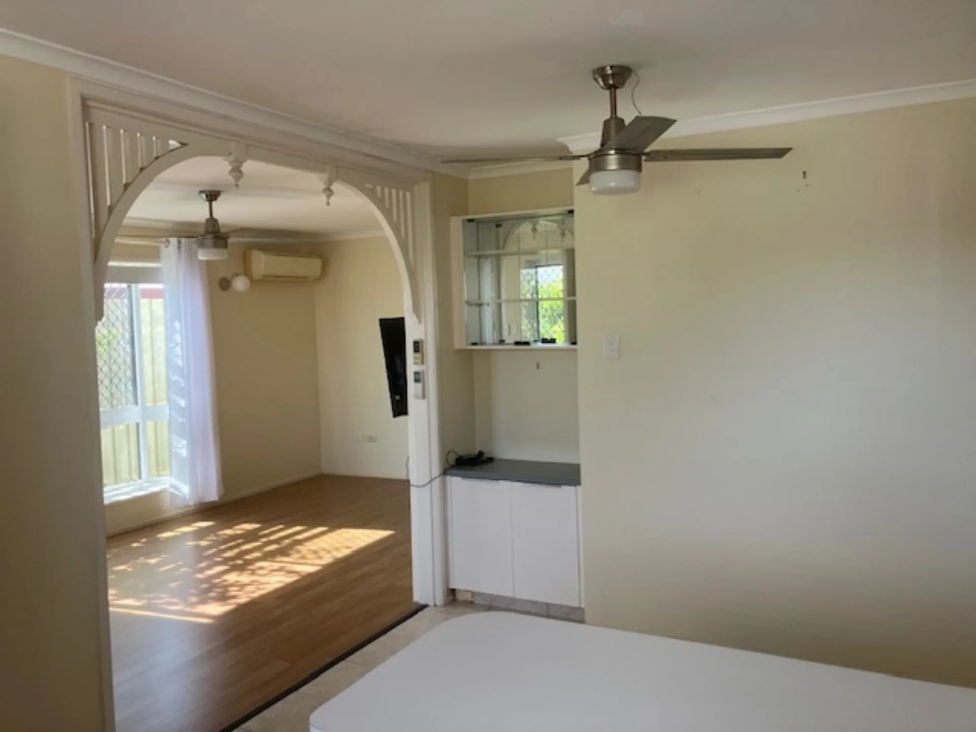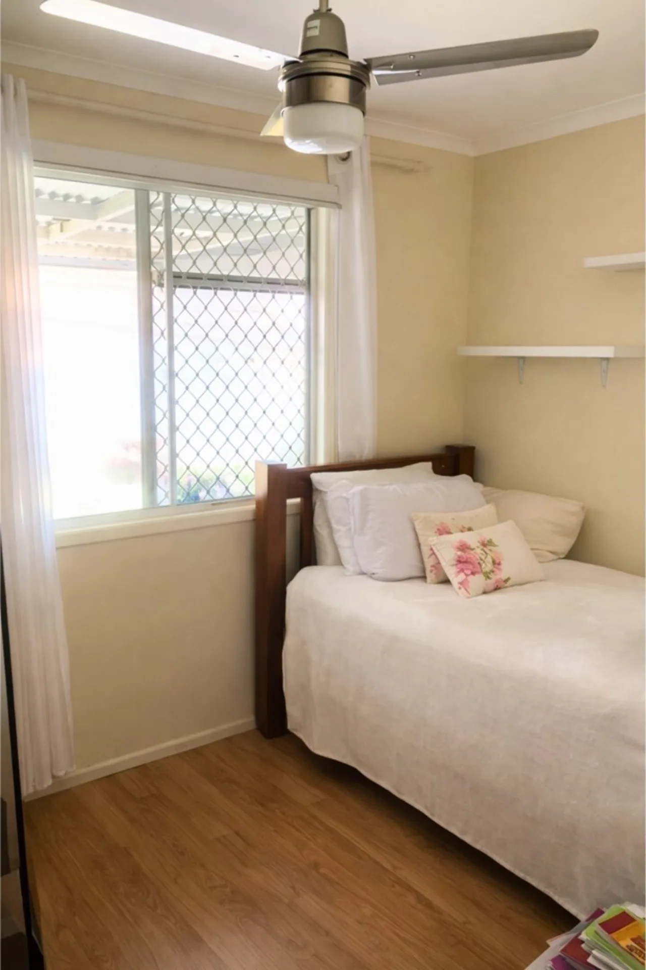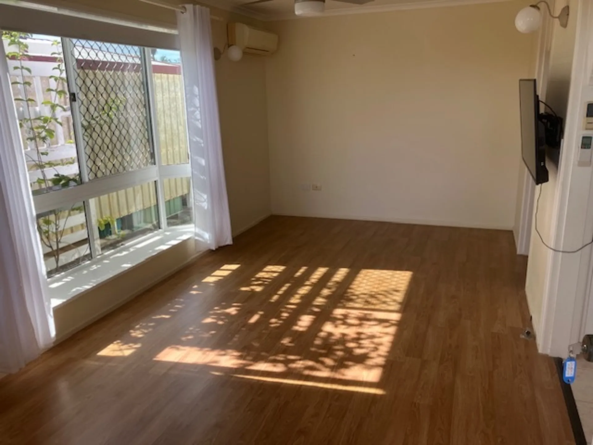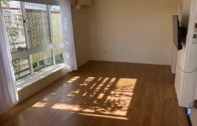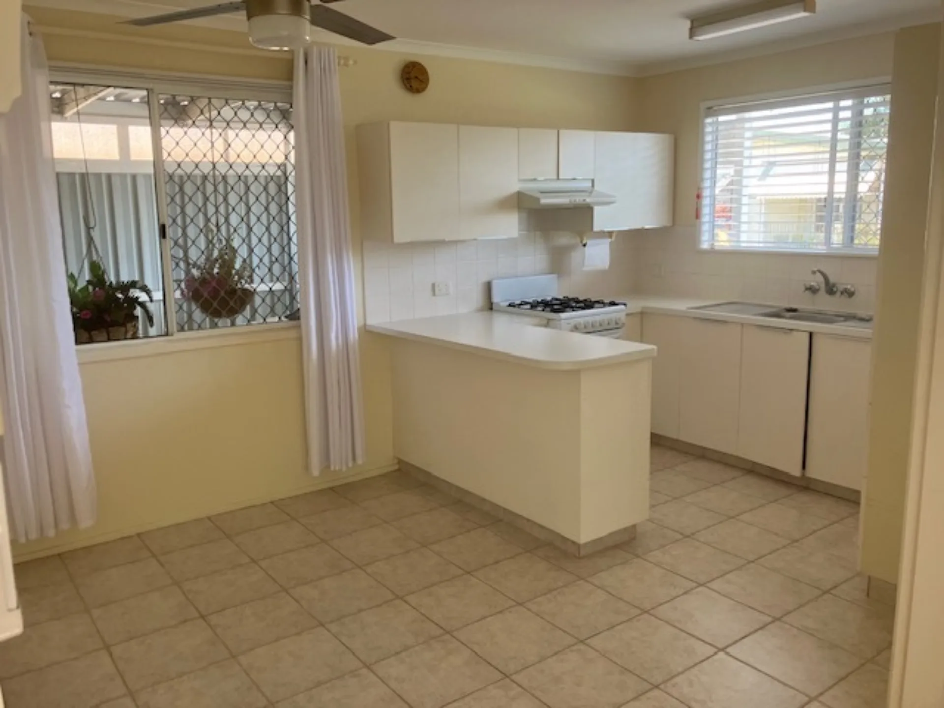 Inside, the home features a separate kitchen and dining area, complete with a gas oven and stovetop, along with air conditioning and ceiling fans to keep you comfortable year-round. Both bedrooms include built-in robes, while the bathroom is complemented by a separate toilet for added convenience.