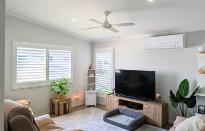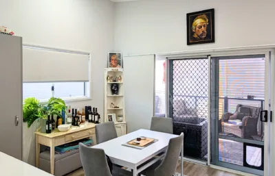 Enjoy the ease of open plan living with a well-appointed kitchen featuring gas cooking, stone benchtops, and a dishwasher. The living area is air-conditioned for year-round comfort, with ceiling fans and security doors adding to the practicality. The two bedrooms include built-in robes, with the main offering a generous walk-in. The bathroom is neat and functional, with the bonus of a second toilet for added convenience.
