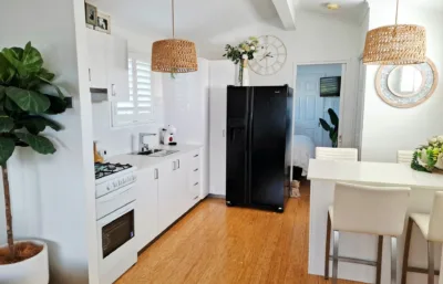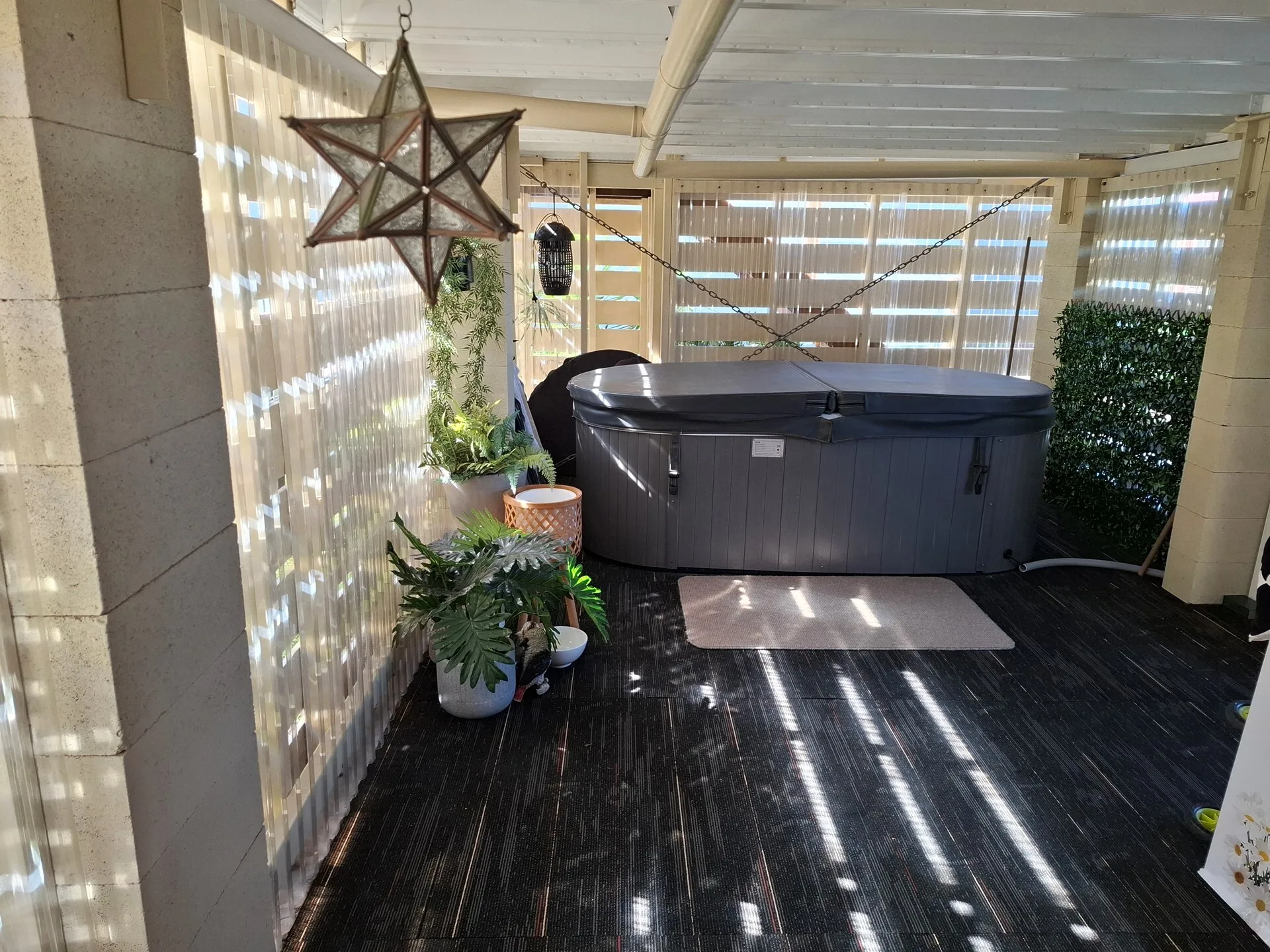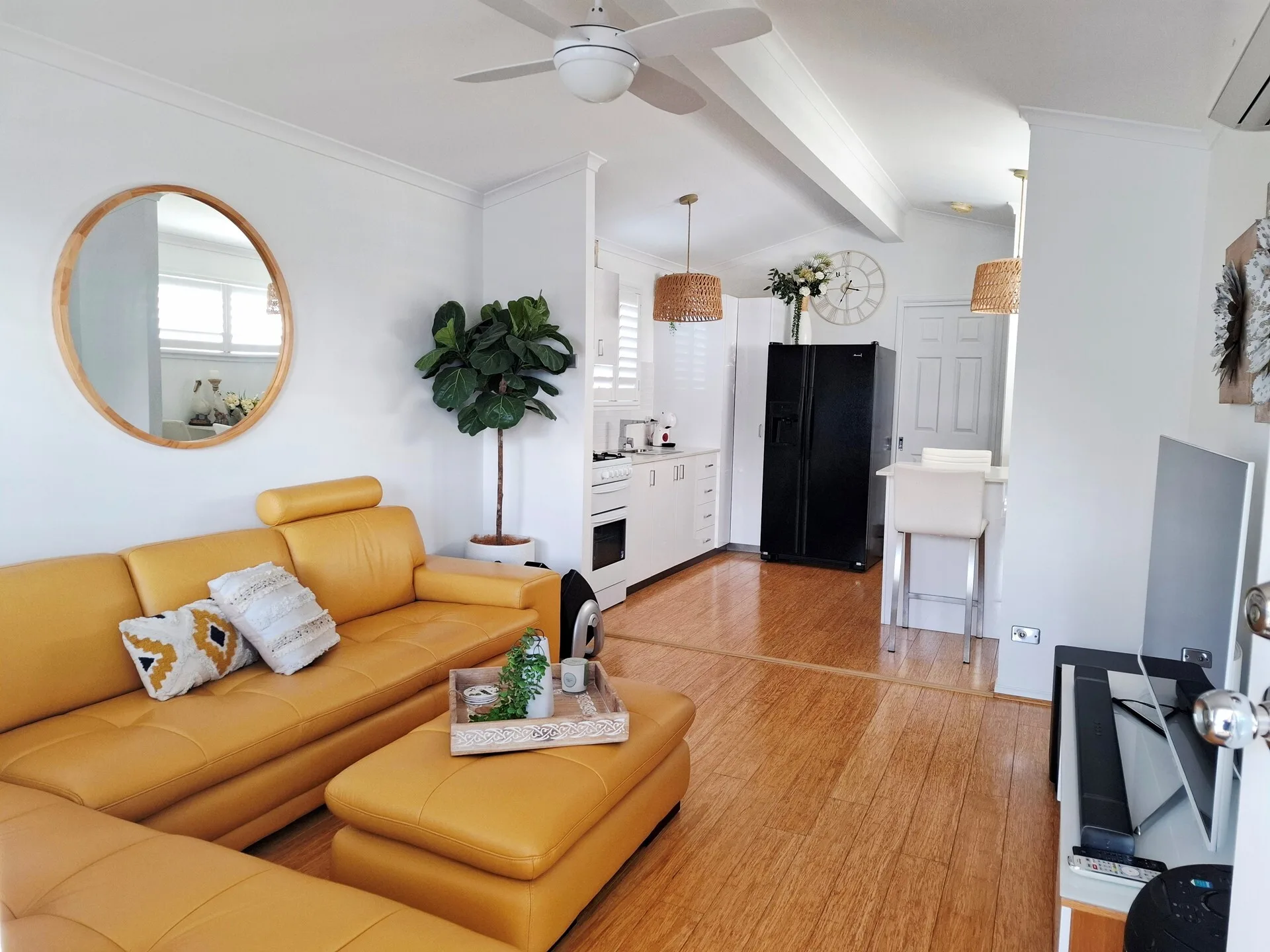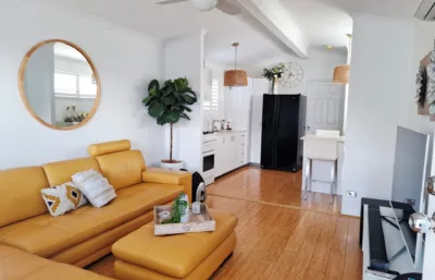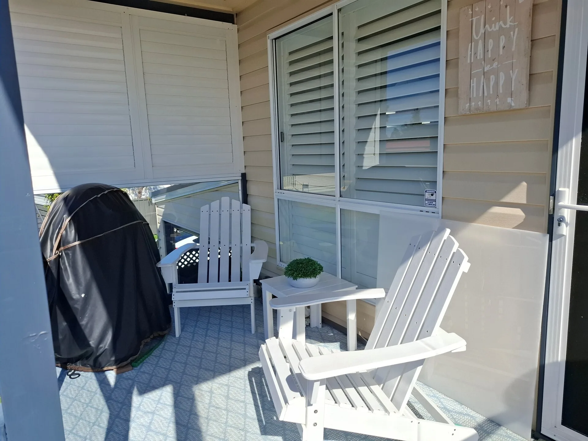 The spacious bedroom features built-in robes and its own air conditioning. Enjoy your morning cuppa or unwind in the included spa – there’s nothing left to do but move in and enjoy. Pets are welcome, and there’s a single car space plus marine carpeted under-house storage.
