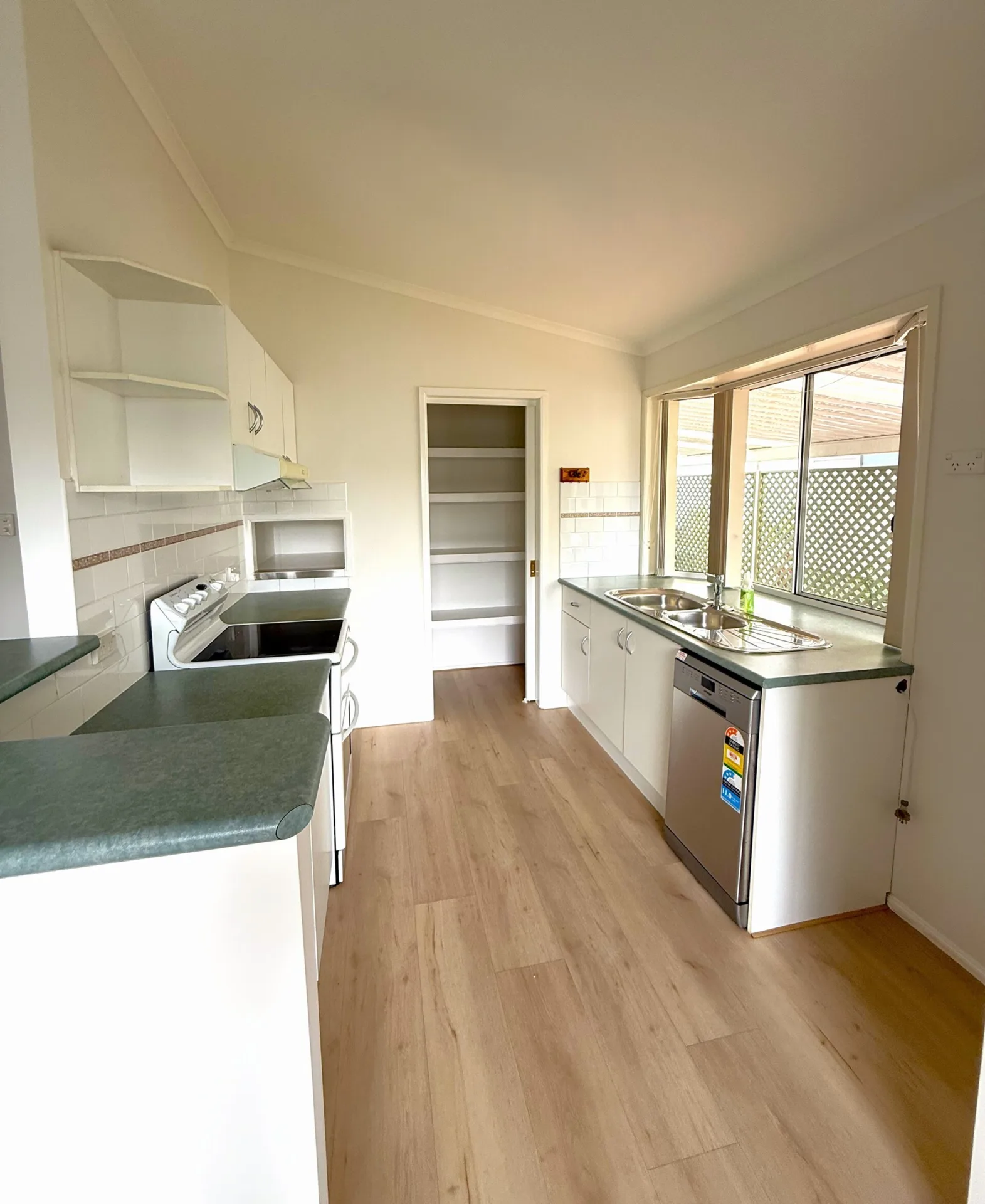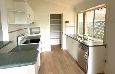 Step inside to discover a bright, open-plan living and dining area, with French doors leading to a private, gated verandah – a lovely spot to enjoy your morning cuppa. The well-appointed kitchen includes a bay window, electric cooking, dishwasher and large pantry, making daily living a breeze.