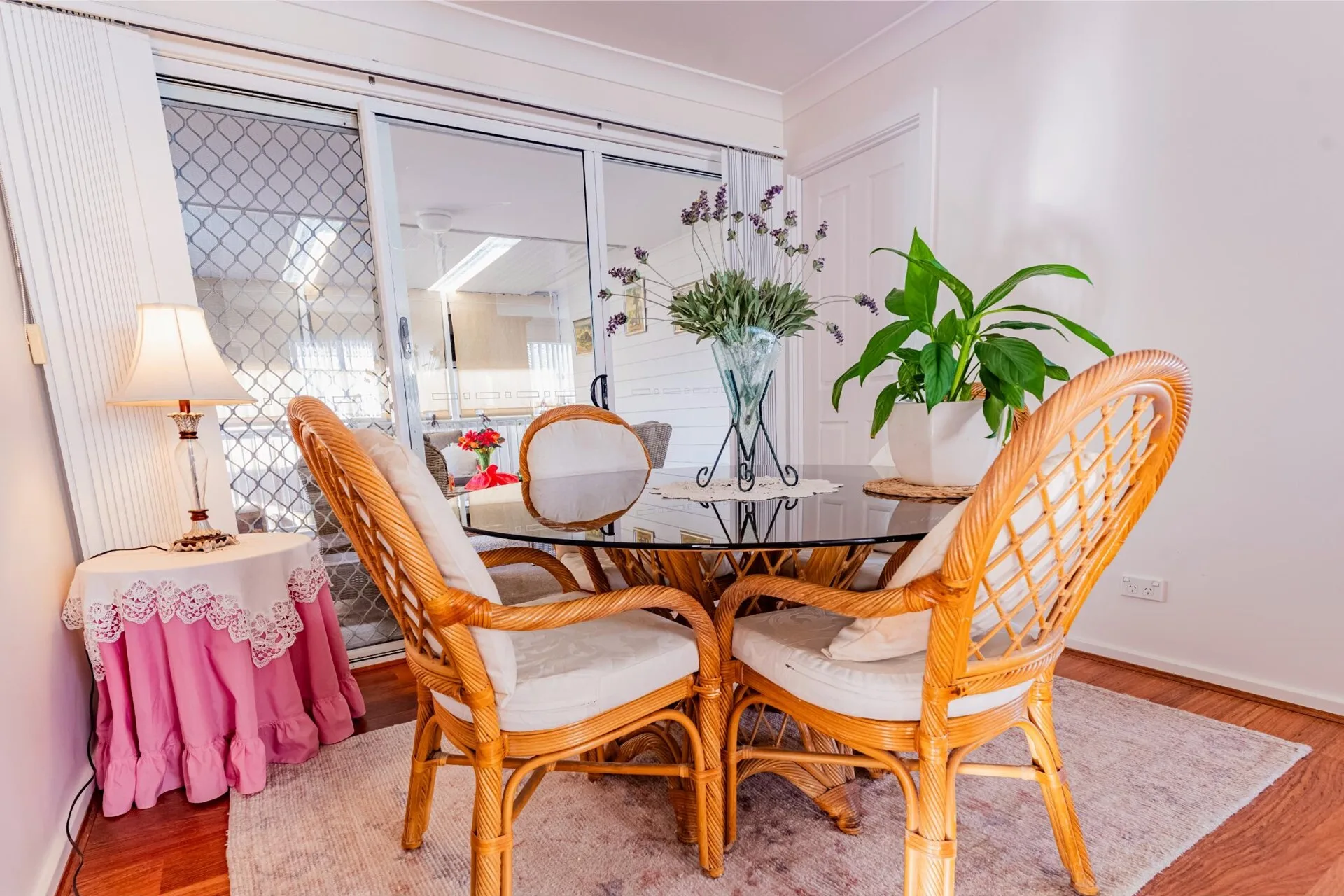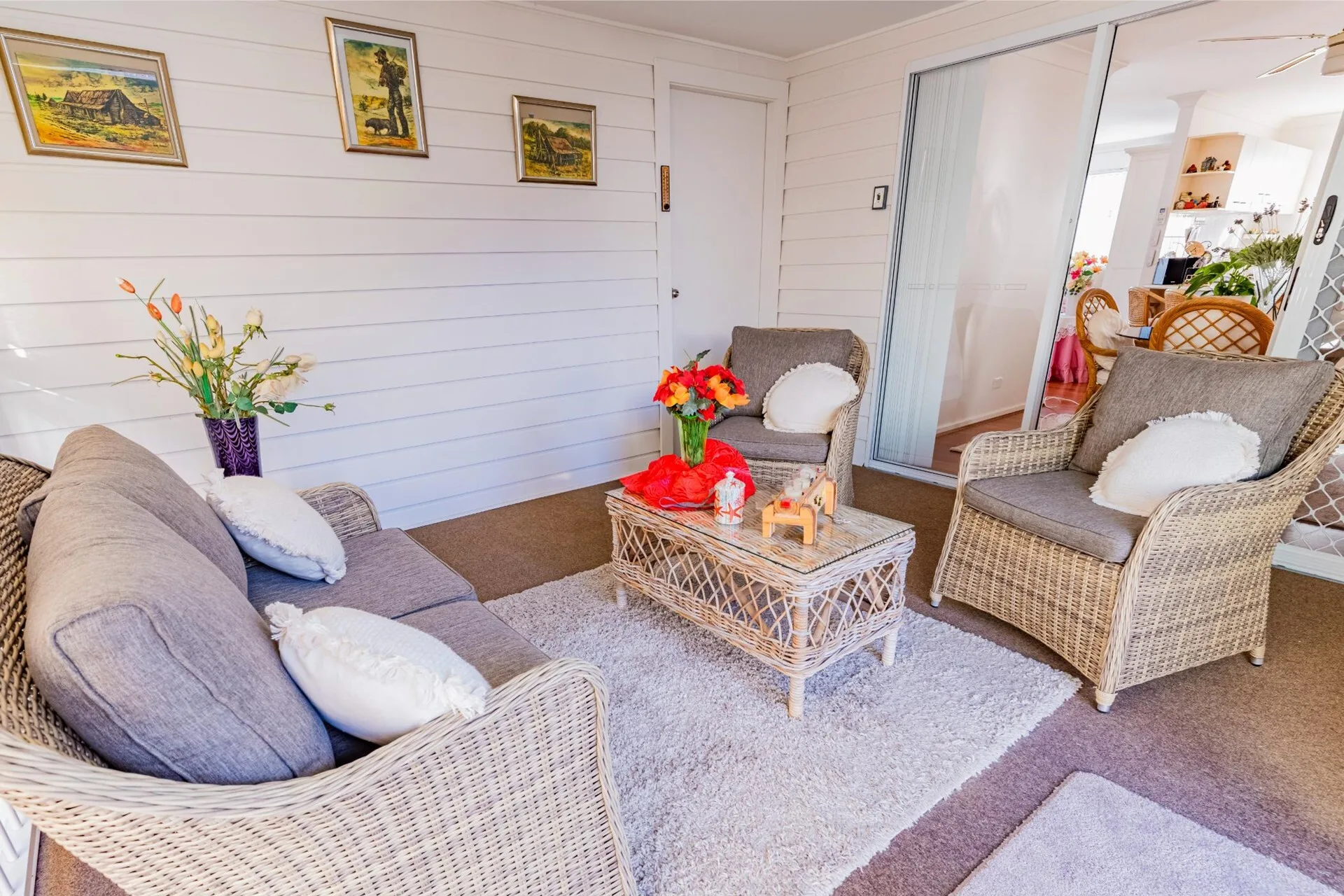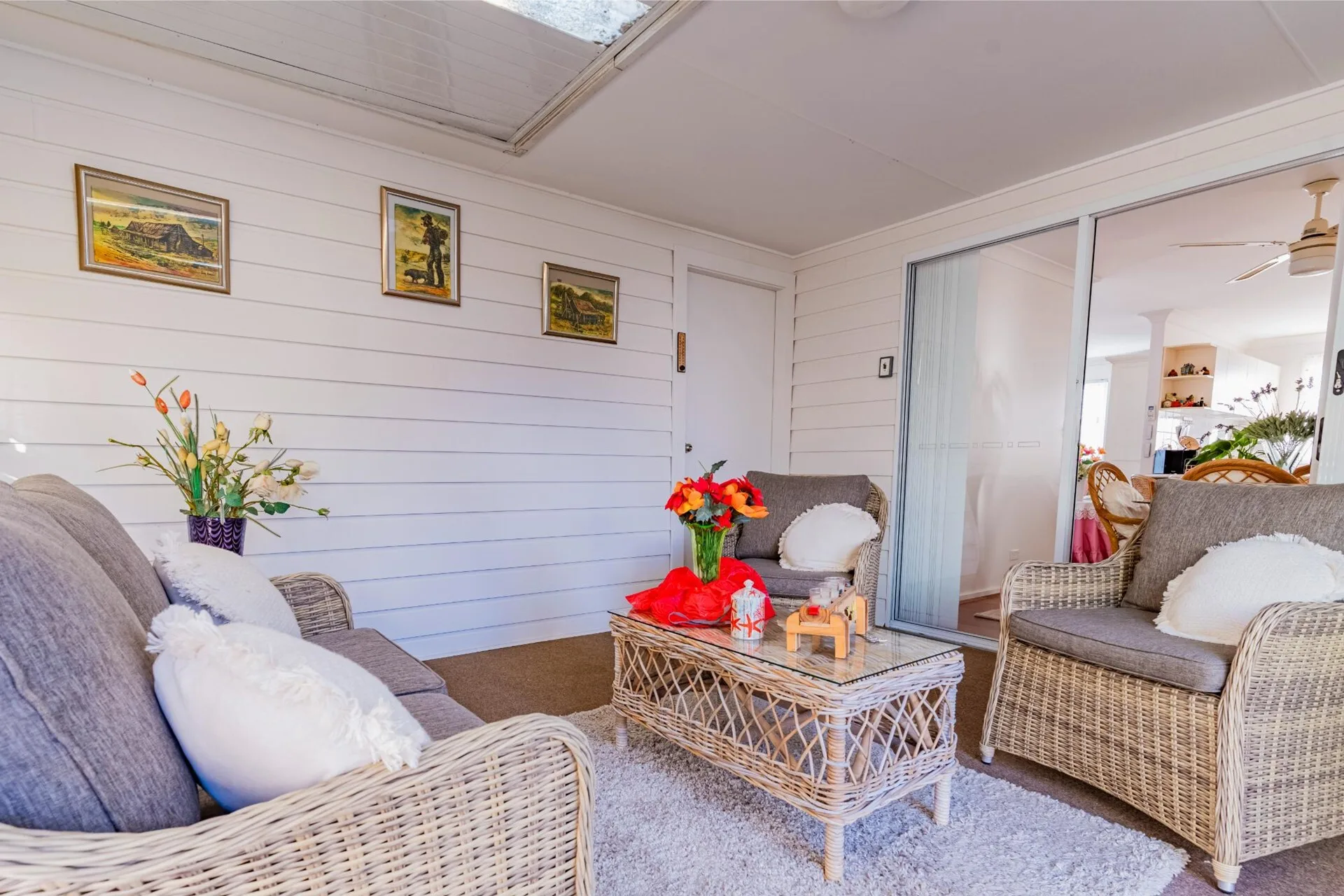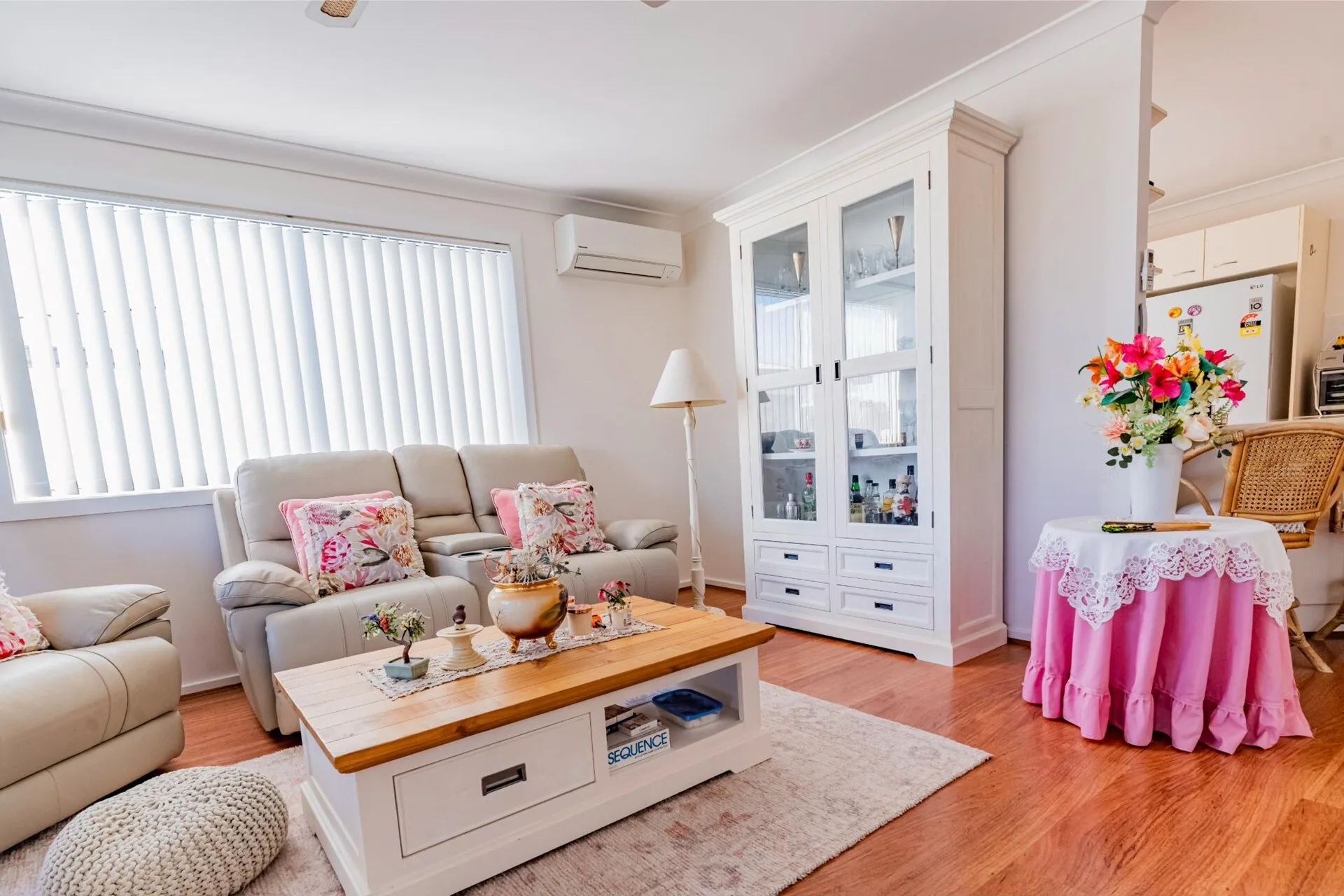 Step into relaxed coastal living at Lake Munmorah Village with this freshly updated 2 bedroom + study home on Site 63. Bathed in northern sun, the home welcomes you with a charming front deck fitted with powered blinds – perfect for a morning cuppa while you watch the day begin.