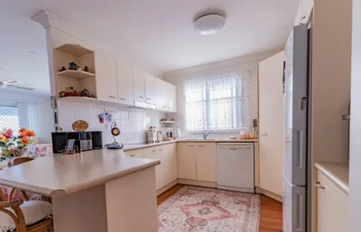 Inside, new timber-look flooring, air-conditioning and ceiling fans keep every season comfortable. The open-plan kitchen features a dishwasher and plenty of storage, flowing to a light-filled lounge and dining zone. All bedrooms include built-in robes, and the bathroom is supported by a handy second toilet.