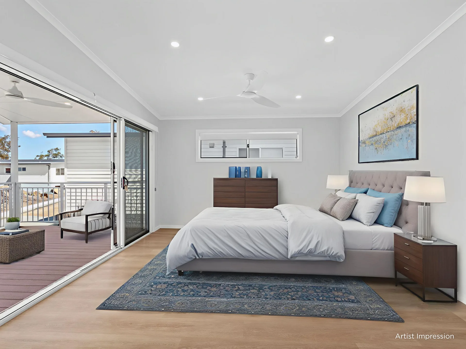 Finished in the calming Standard Coastal colour scheme with sandy neutrals, the home includes vinyl flooring in living areas, plush carpet in bedrooms, v-groove Hamptons-style doors, air-conditioning, ceiling fans, and a beautifully appointed outdoor BBQ deck with ModWood decking and mood lighting. A single undercover carport completes the package.