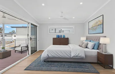 The open-plan living and dining areas flow seamlessly onto the outdoor deck, offering the ideal setup for entertaining or simply enjoying the fresh lakeside air. The stylish kitchen features engineered stone benchtops, a breakfast bar, Westinghouse gas cooktop, electric oven, and rangehood, plus a Fisher & Paykel dishwasher.