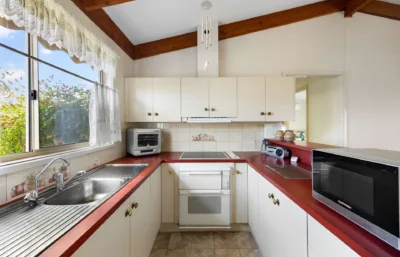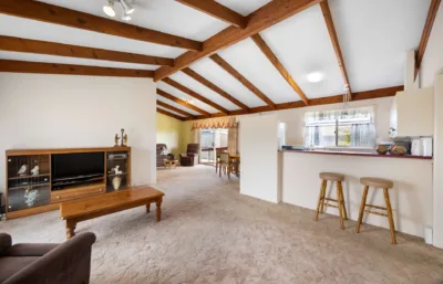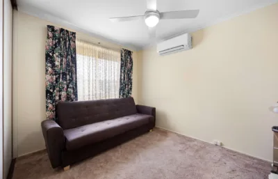 Inside, the property features a split system air conditioner in the lounge and both bedrooms, ensuring year-round comfort. Bedroom two also includes a ceiling fan for additional airflow. The home has a raked ceiling in the living area, creating a light and spacious feel.