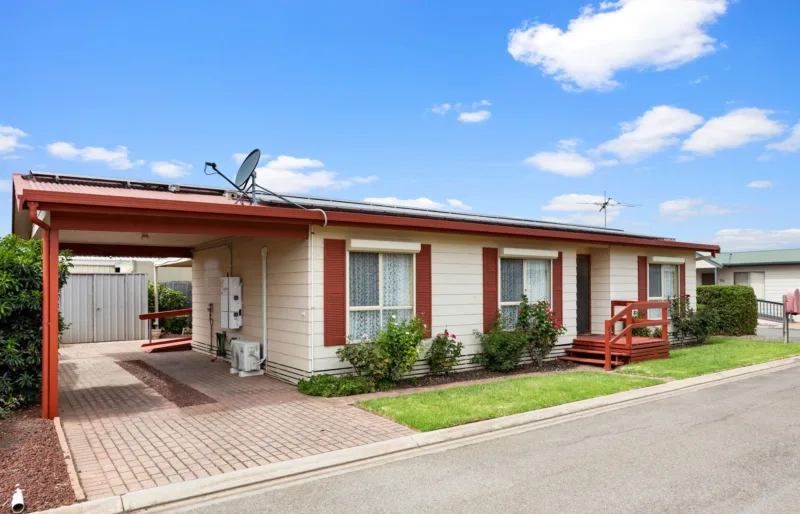 Additional features include a solar power system (energy-efficient living), a garden shed with ramp access, a single carport and low-maintenance outdoor areas.