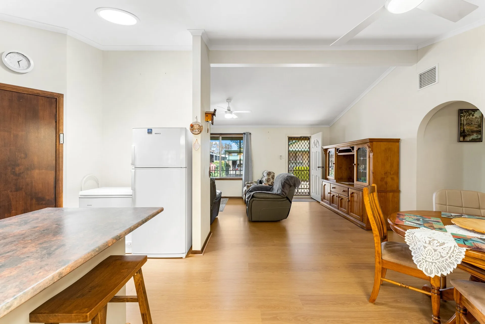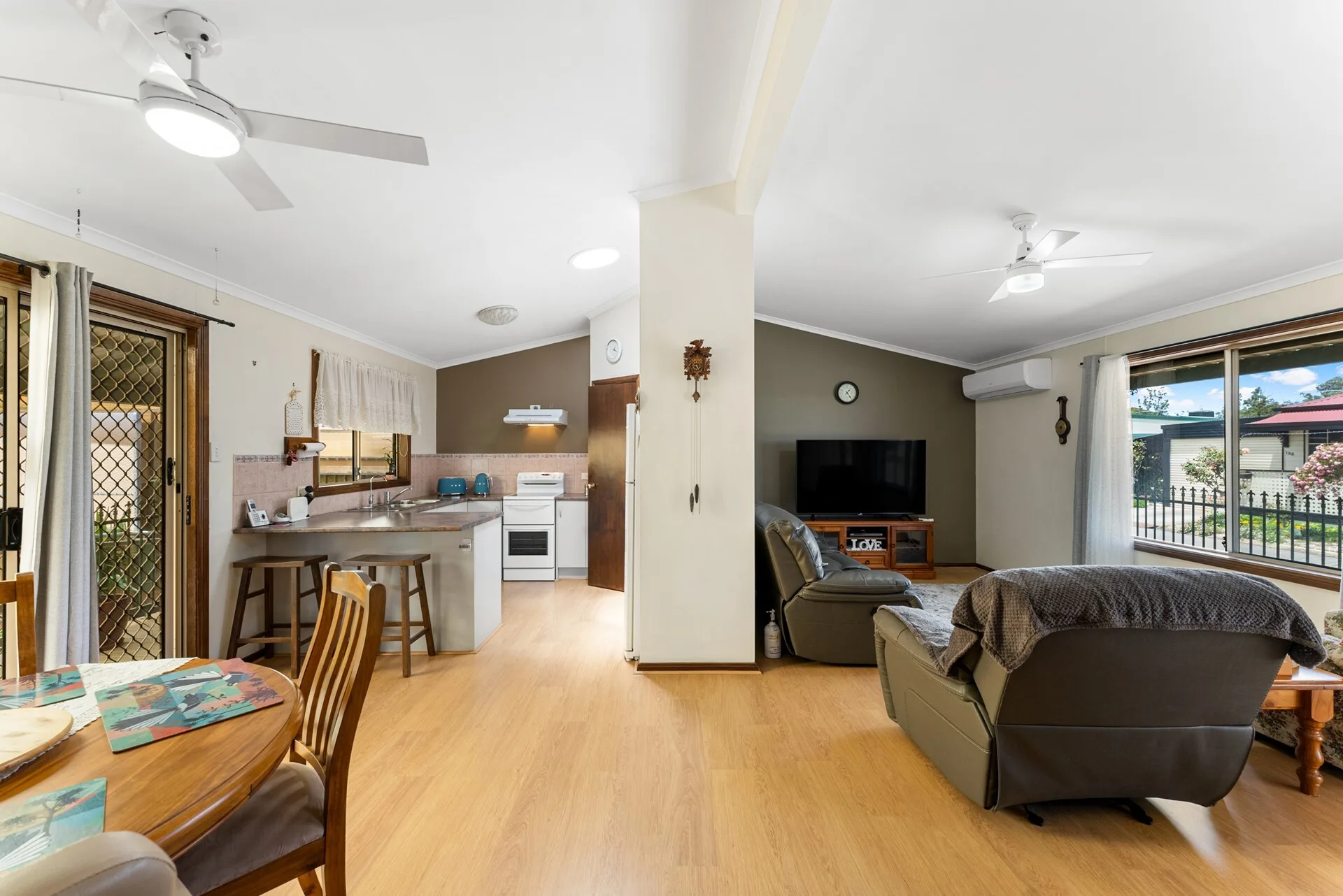 A separate toilet and laundry add practicality, and the layout makes everyday living simple. Whether you're enjoying a cuppa under the roller shutters or simply appreciating the quiet surroundings, this home is built for ease and peace of mind.