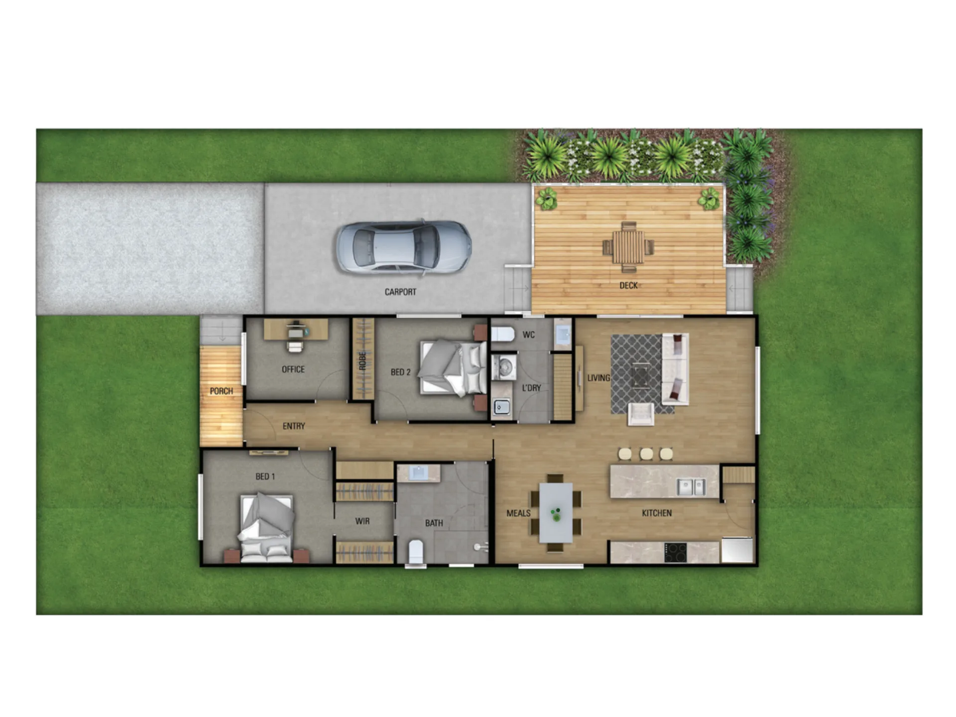 The main bedroom includes a walk-in robe and direct access to the main bathroom, while the second bedroom and separate WC are perfect for when family or grandkids come to stay. Additional features include a full laundry, covered carport, and a flexible office space — ideal for hobbies, a study nook, or extra storage.
