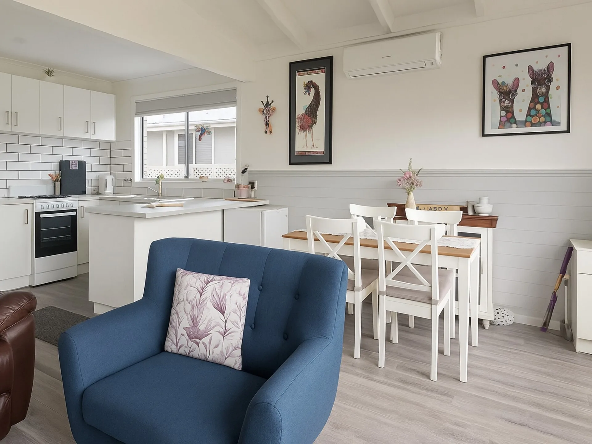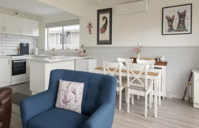 The heart of the home offers comfortable open plan living with air conditioning, ideal for year-round comfort. Both bedrooms include built-in robes and cosy carpet underfoot, creating peaceful retreats. The kitchen features gas cooking and flows easily into the living and dining spaces, making everyday living a breeze.