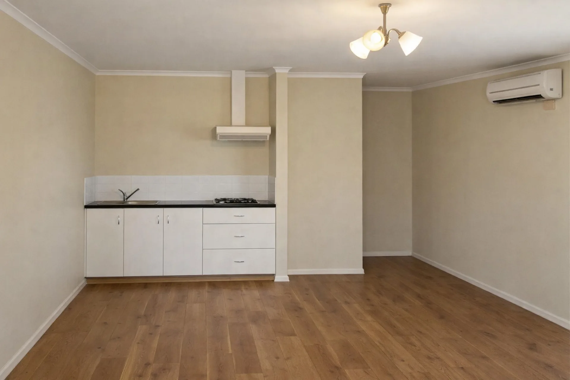 Step inside to an open plan living and dining area with timber-look flooring and air conditioning, creating a welcoming space to relax year-round. The practical kitchen features gas cooking and provides scope to add your own touches over time, such as an island bench or oven upgrade, making it a wonderful opportunity to personalise and add value.