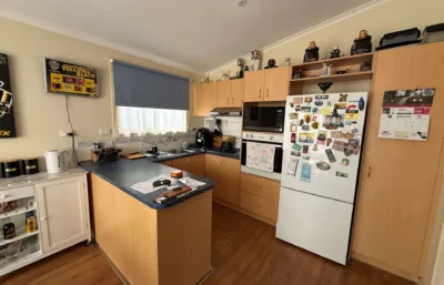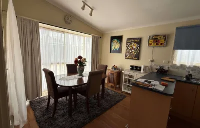 Inside, you’ll find a light-filled open plan living and dining area, complete with air conditioning and ceiling fans for year-round comfort. The well-equipped kitchen features gas cooking and ample storage, while timber-look flooring adds a practical, easy-care finish. The main bedroom include built-in robes, with the generously sized master offering plenty of space to relax.
