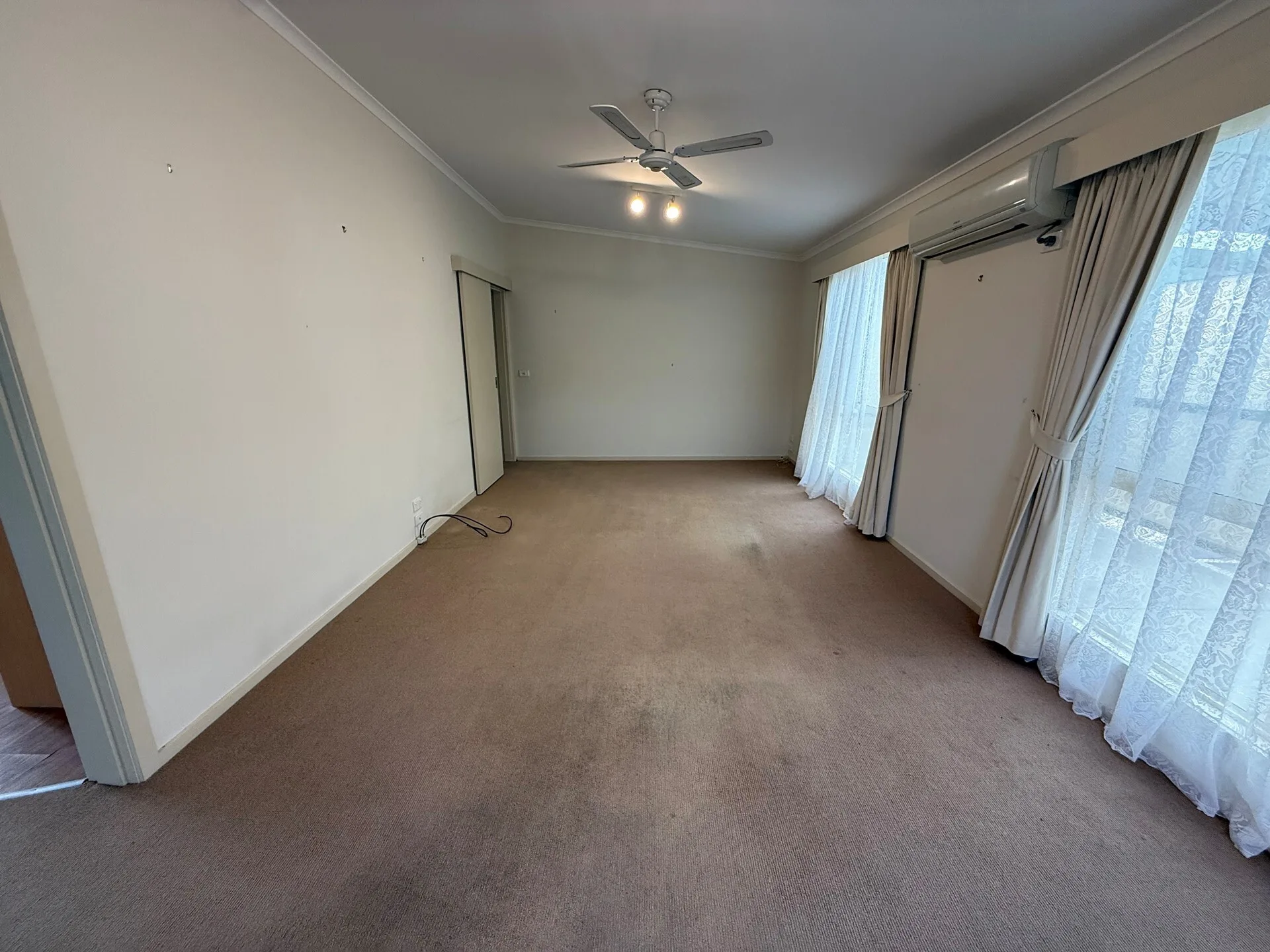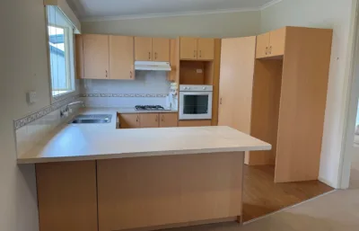 Inside, vaulted ceilings enhance the sense of space, while easy-care lino flooring through the main living areas keeps maintenance simple. The kitchen features gas cooking, ample cupboard space and a practical layout that connects seamlessly to the living and dining zones. Both bedrooms include built-in robes and soft carpet underfoot, with air conditioning ensuring comfort throughout the seasons.